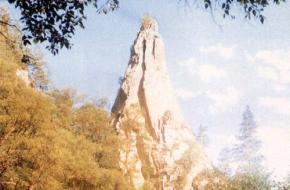 被称为沙漠之舟,丝绸之路使者的驼峰岭,绿装翠裹,巍然屹立,迎接着游客的来临。风光无限的天窗眼更乃天下奇观。世之罕见,在高插插云天的山壁上“洞天石扉,訇然中开”,仿佛观察天体的放远镜,使我们看到那山外青山峰外峰的壮美景致。天窗眼往前,群山环绕,峭壁耸峙,壁角有藏龙洞,溪水入洞复出,婉若龙口吐珠;洞侧有一巨石相对而立,称虎探龙穴之石;抬头仰望,天空被峭壁裁为月牙形,曰藏龙卧虎半月天。金刚峰和七夕桥中间的针叶林中,有一片特别引人注目的红桦林,在绿色的点缀下,极为艳丽,惹人喜爱。那气冠苍穹,摩天顶立的玉柱,更使游人叹为观止。